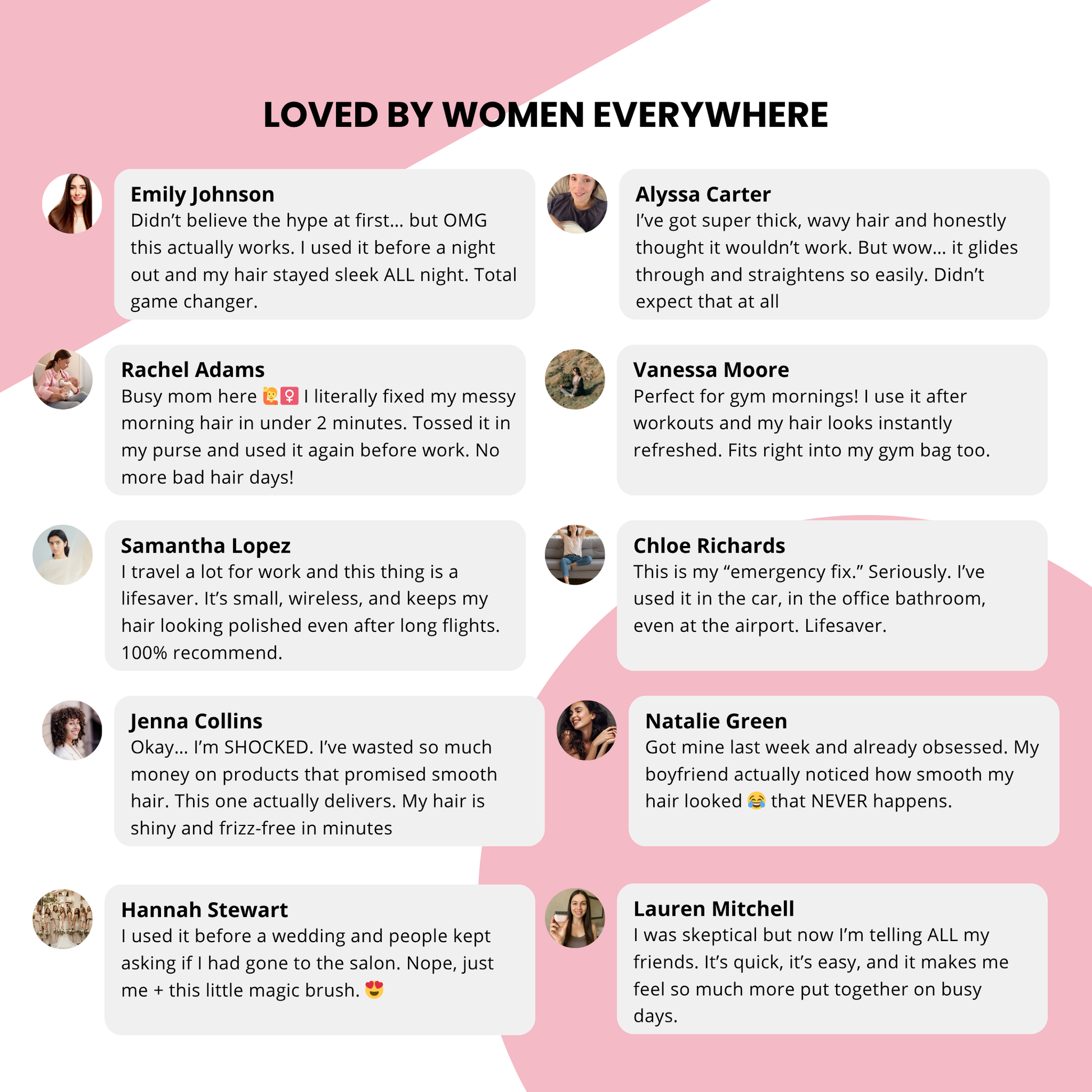 A few easy strokes help your hair settle into a smooth, polished look that feels natural and light. Many users say they enjoy the soft shine and the calm, tidy finish it brings to their morning routine. ChicBrush works gently on every strand, helping you start the day feeling a little more put-together.