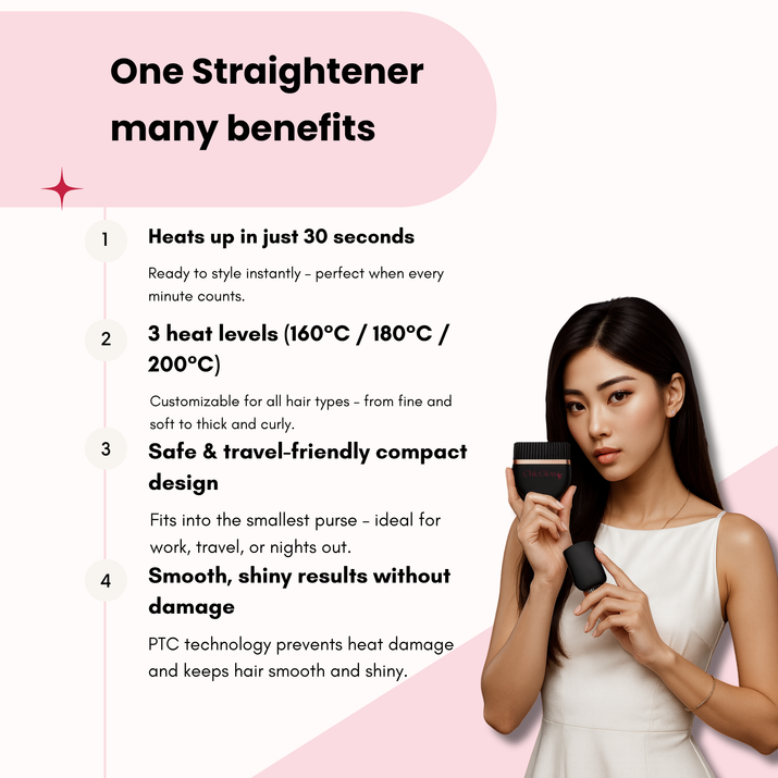 💖 ChicBrush™ delivers salon-smooth results in minutes, no cords, no stress, just effortlessly polished hair wherever life takes you.